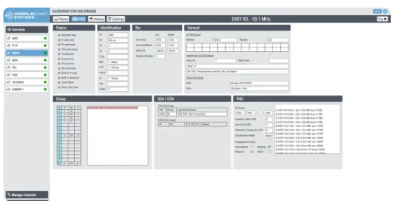 - FM/RDS Monitoring: Full FM signal analysis with complete RDS decoding