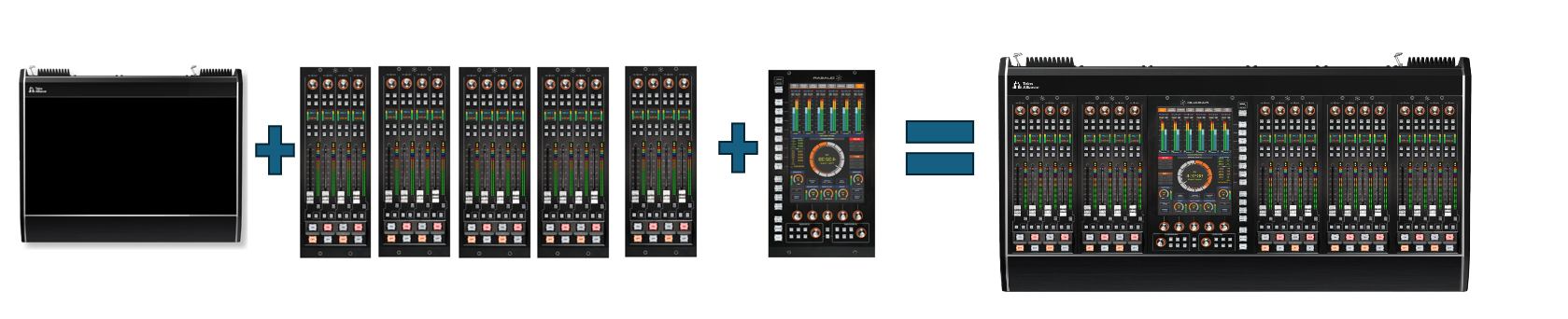 - Five, Quasar XR-4FAD, 4 Channel Motorized Fader Modules preinstalled.